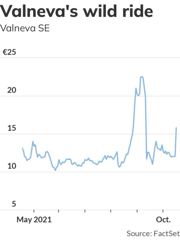 Valnevas wild stock-price rise continued on Monday after the French biotech said its coronavirus vaccine candidate outperformed AstraZenecas in a trial.