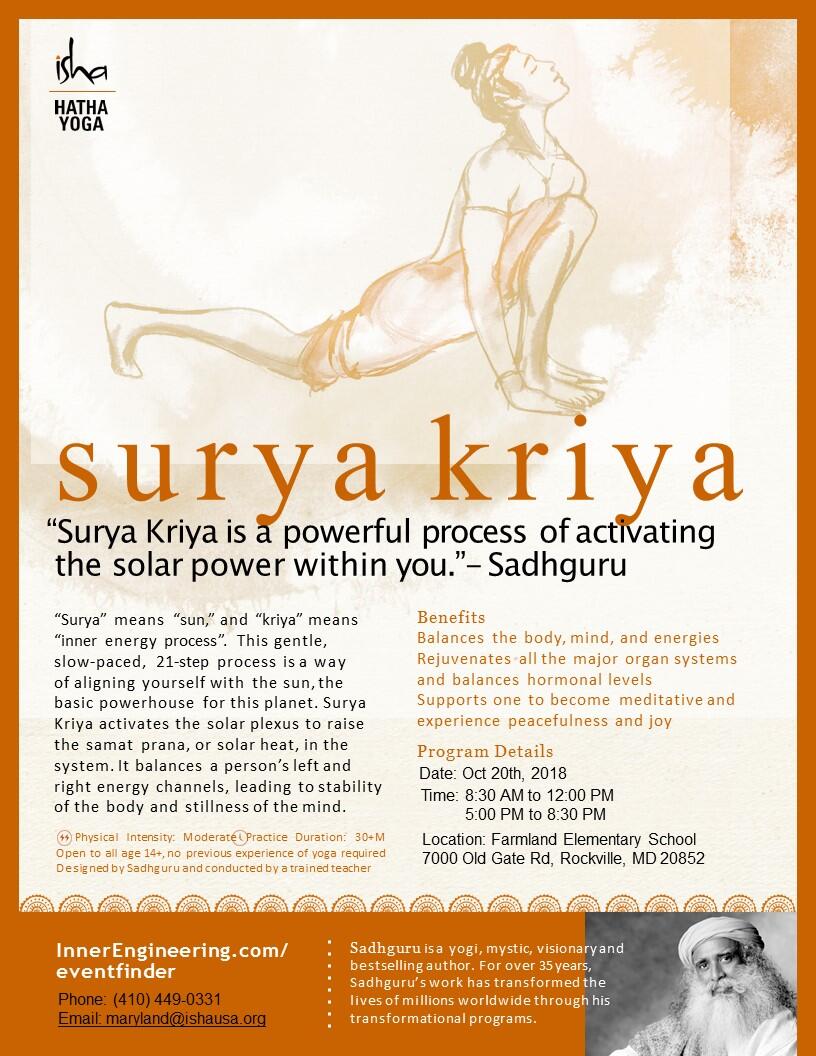 Oct 20 Surya Kriya In Rockville Md Nextdoor