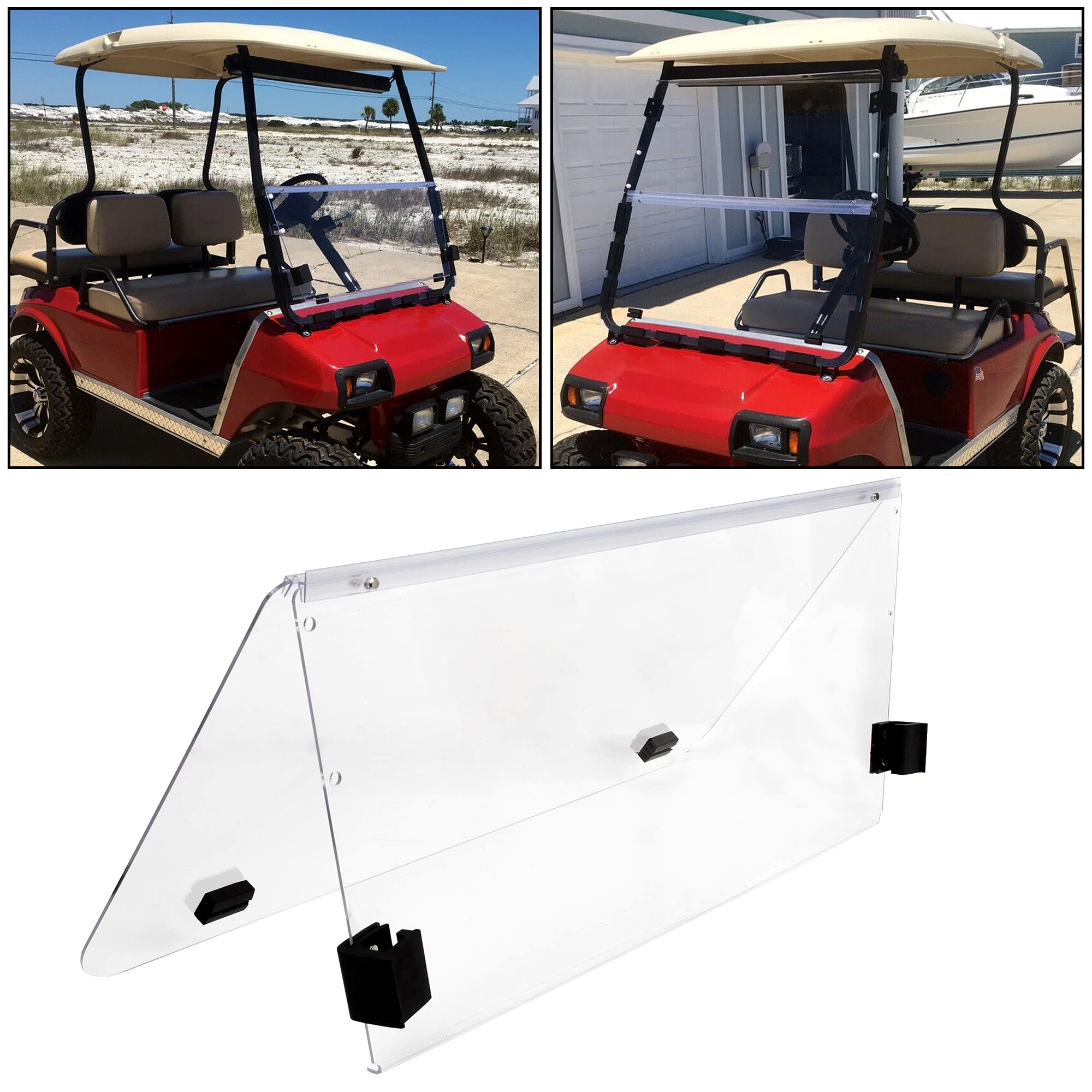 Amazon Com Ecotric New Clear Windshield Compatible With 2000 5 Up Club Car Ds Golf Cart Ezgo Fold Down Automotive